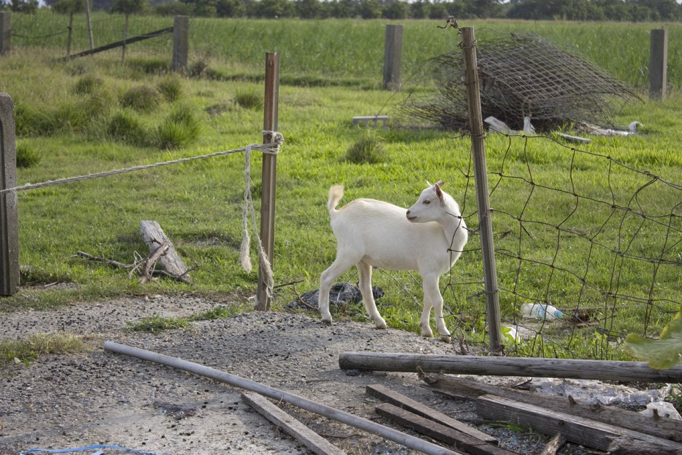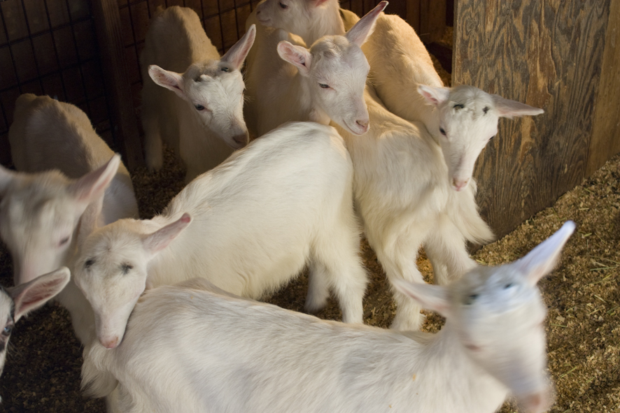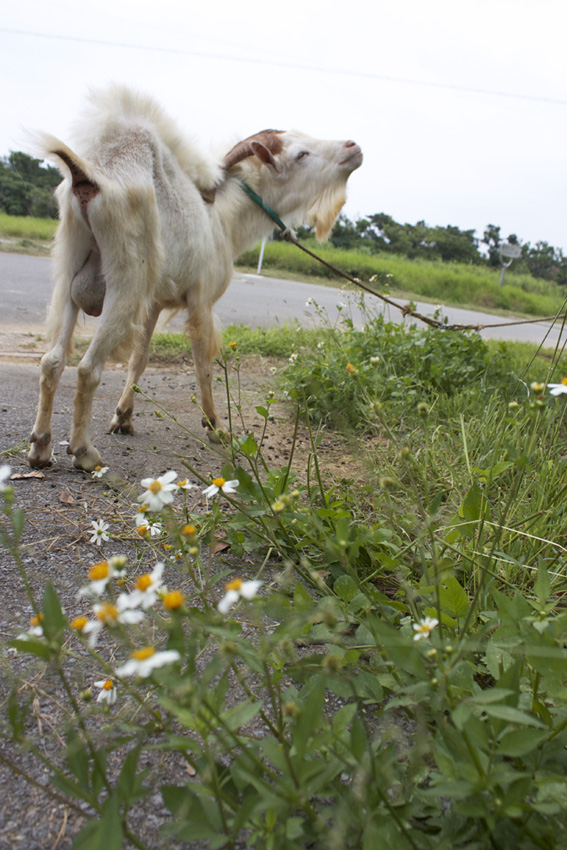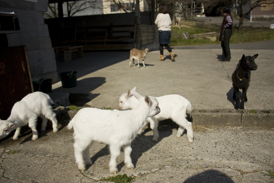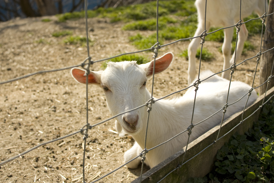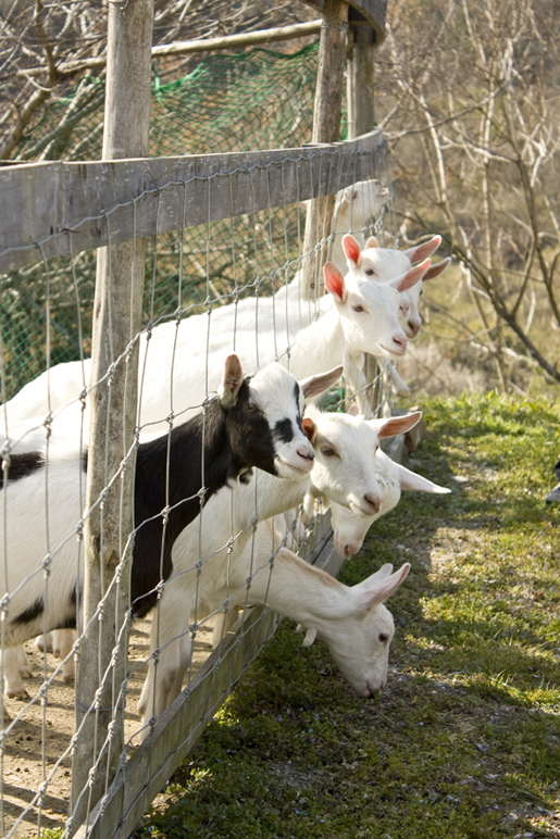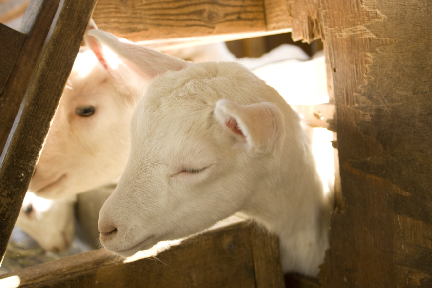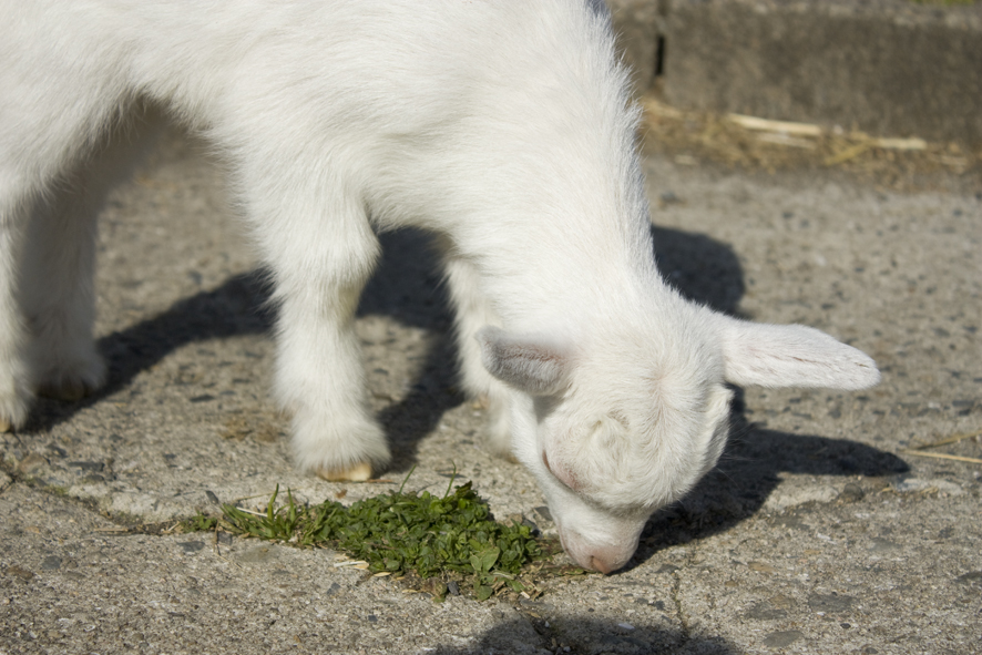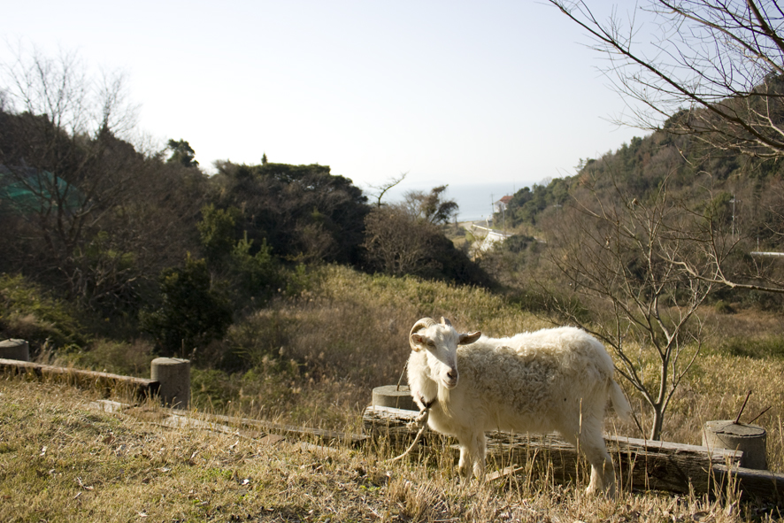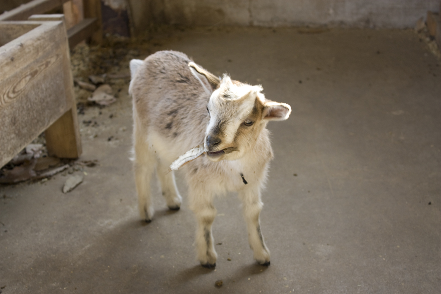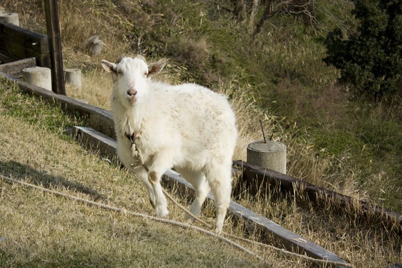 この宿の一員、山羊のミモザくんです。