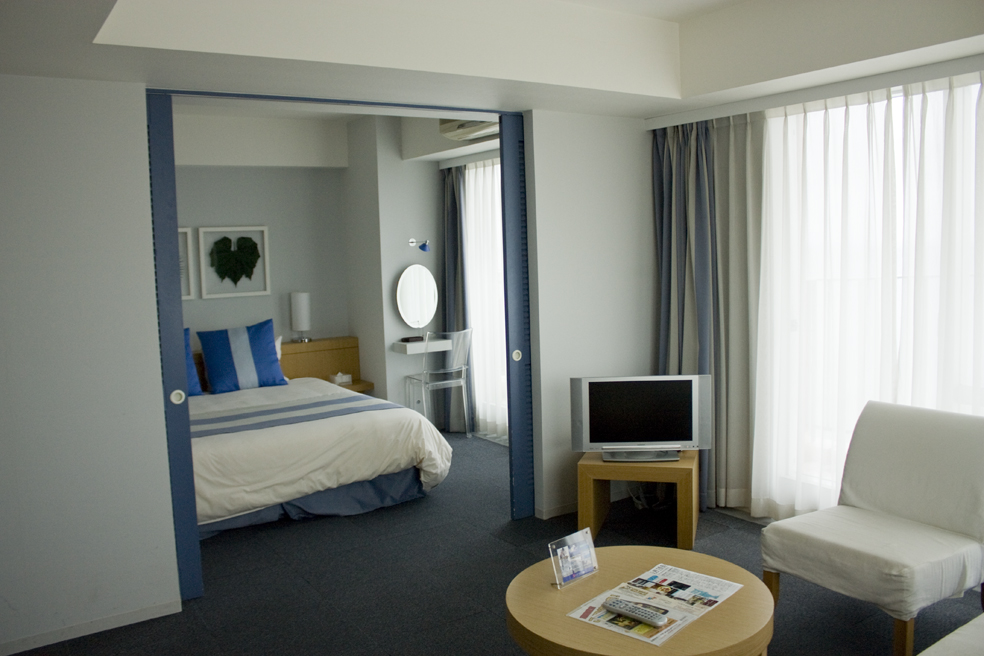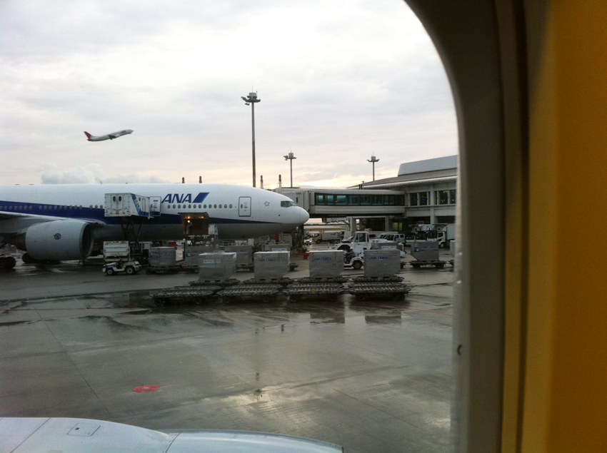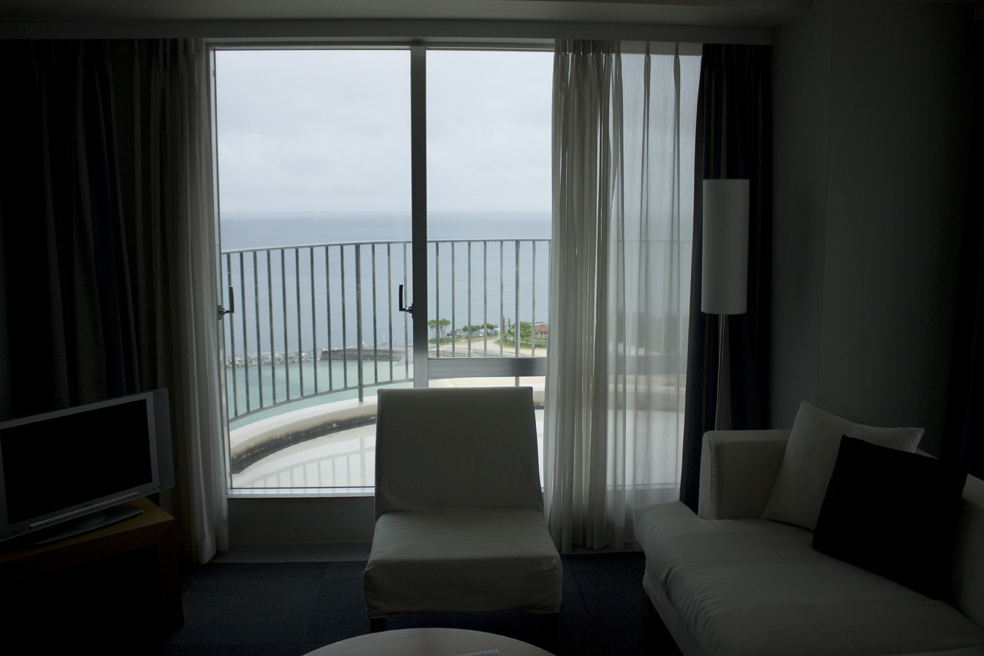 飛行機が那覇空港に向けて着陸態勢に入った放送で目覚めます。