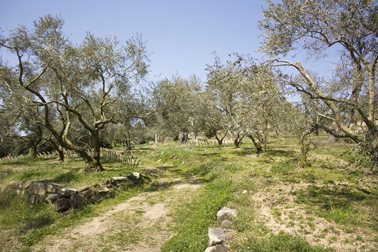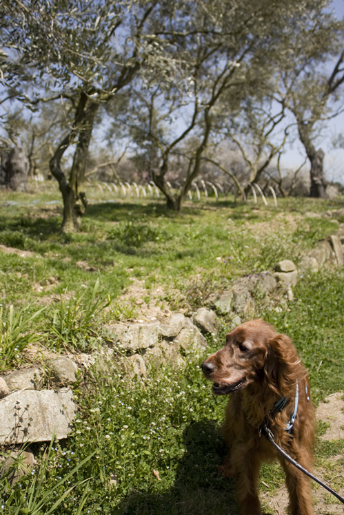 たくさんのオリーブの木の間をハリーも一緒にお散歩。