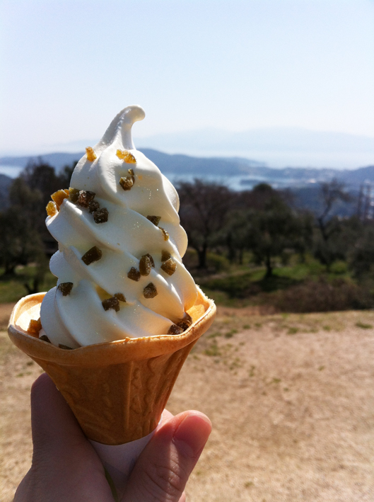 島々を眺めながらのオリーブソフト。