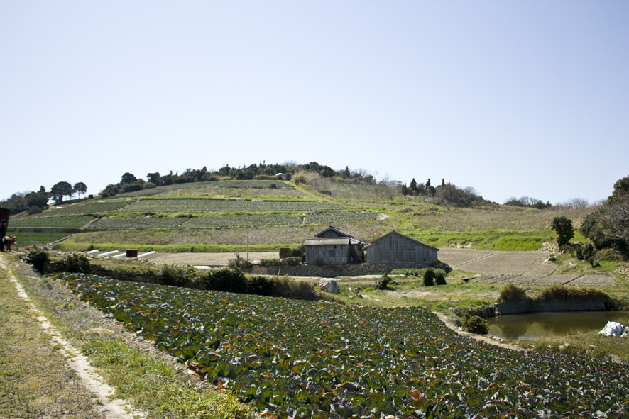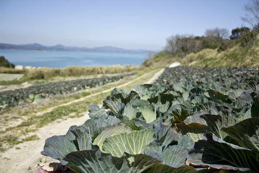 キャベツ畑が広がるのどかな風景。