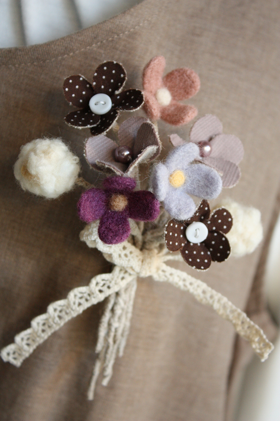 2010年3月13日(土):羊毛といろいろ素材のコサージュ