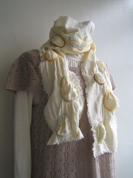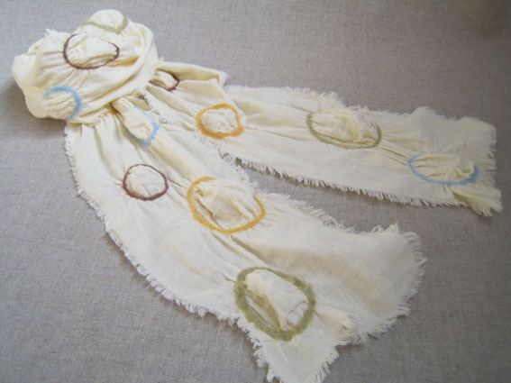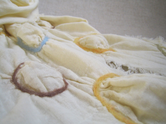 今回はこのガーゼ生地に春色の羊毛をとりどりに配色し、