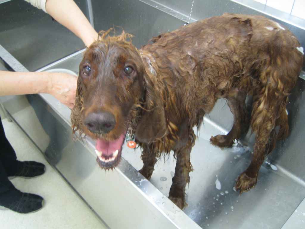 ハリーを洗うときはいつも、その前に精一杯遊ばせて(汚して)から。