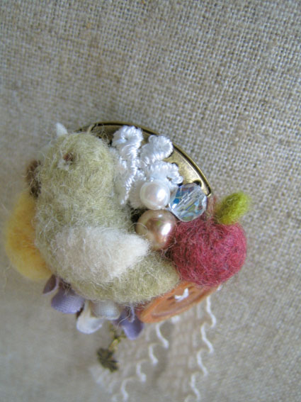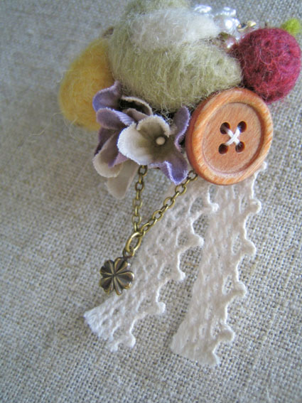 小鳥にラフランスに姫りんご、小花、木ボタン、レースにキラキラビーズ、クローバー…