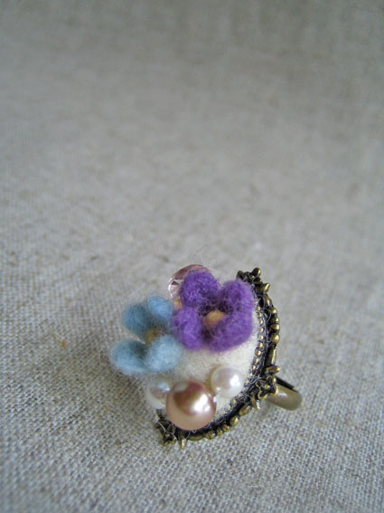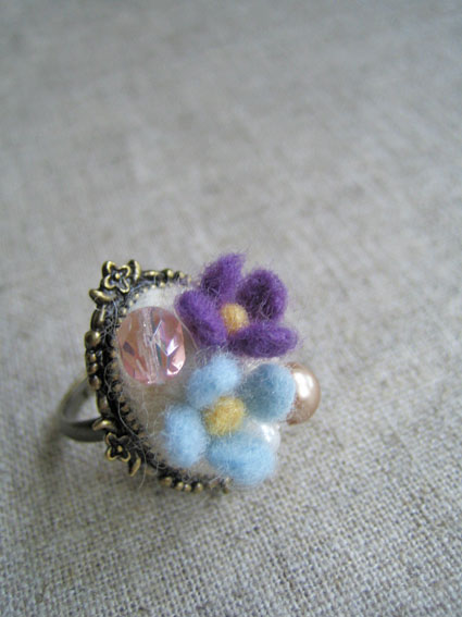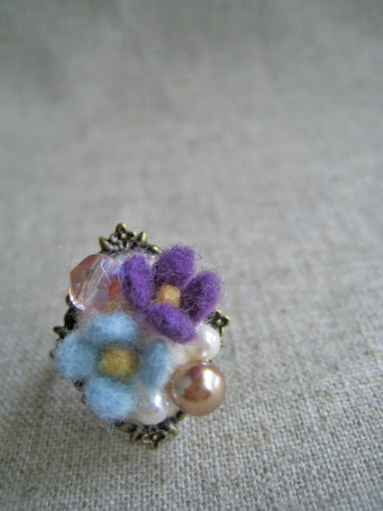 羊毛フェルトで小さなお花のゆびわを作りました♪
