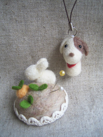 石けん水のほうの羊毛フェルト作品は、出来上がったあと実用できるのがまたステキです。