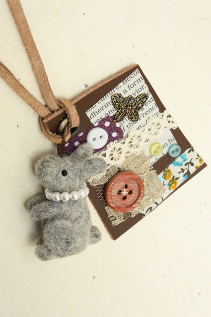 『うさぎといろいろ素材のコラージュペンダント』です。